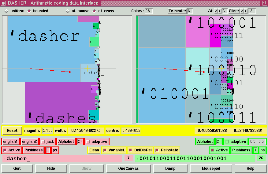• During Summer 2005 several programmers joined the Dasher project. Tadashi Kaburagi contributed the Asian language model for Dasher version 4. Brian Williams added game-mode for version 4. Chris Hack added automatic speed control for version 4. Ingrid Jendrzejewski did experiments on Button Dasher. Frederik Eaton fixed a cursor-display problem.